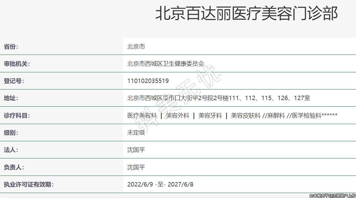 北京百达丽医疗美容2013-02-18成立,地址:北京市西城区菜市口大街甲2号院2号楼111、112、115、126、127室,诊疗科目:医疗美容科 | 美容外科 | 美容牙科 | 美容皮肤科 //麻醉科 //医学检验科******