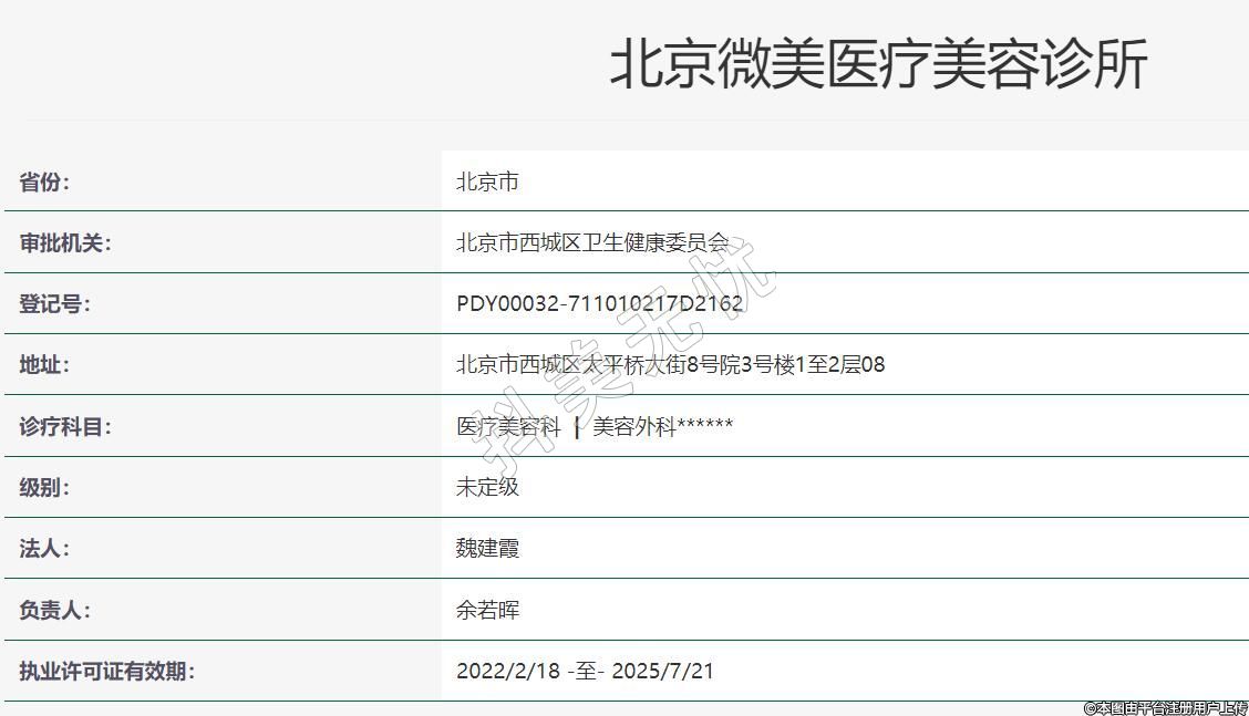 北京微美医疗美容2015-09-01成立,地址:北京市西城区太平桥大街8号院3号楼1至2层08,诊疗科目:医疗美容科 | 美容外科******