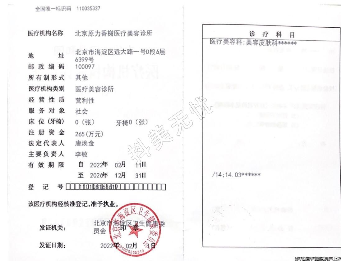 医疗机构名称:北京原力香榭医疗美容诊所