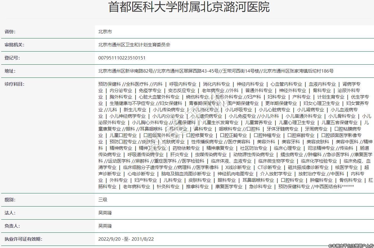 执业许可证有效期:2022/9/20 -至- 2031/8/22