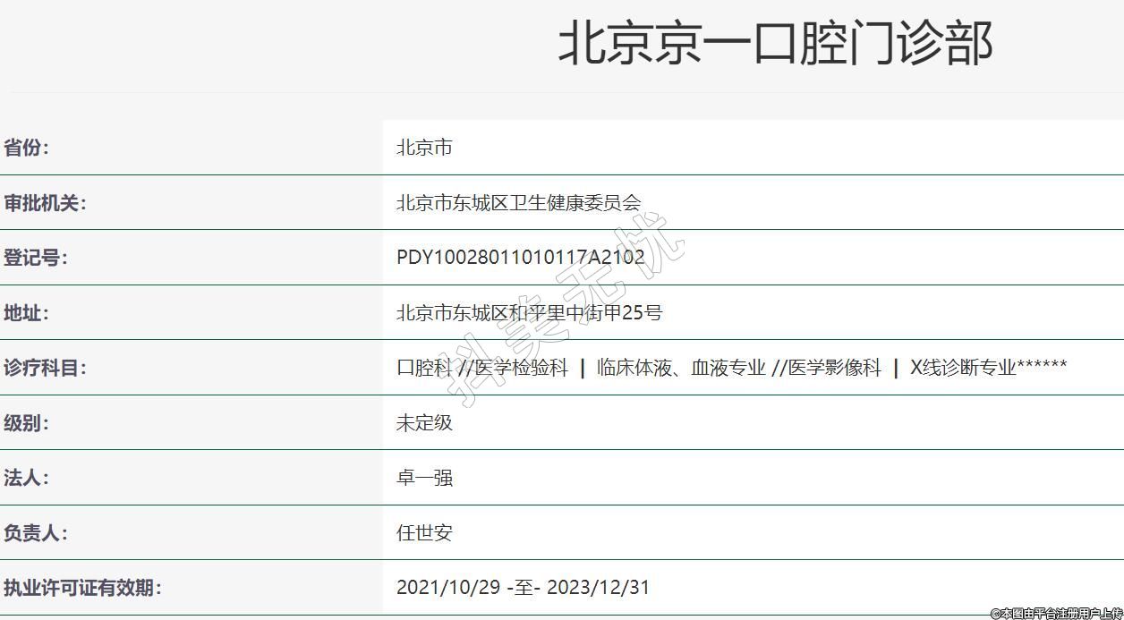北京京一口腔2003-06-23成立,地址:北京市东城区和平里中街甲25号,诊疗科目:口腔科 //医学检验科 | 临床体液、血液专业 //医学影像科 | X线诊断专业******