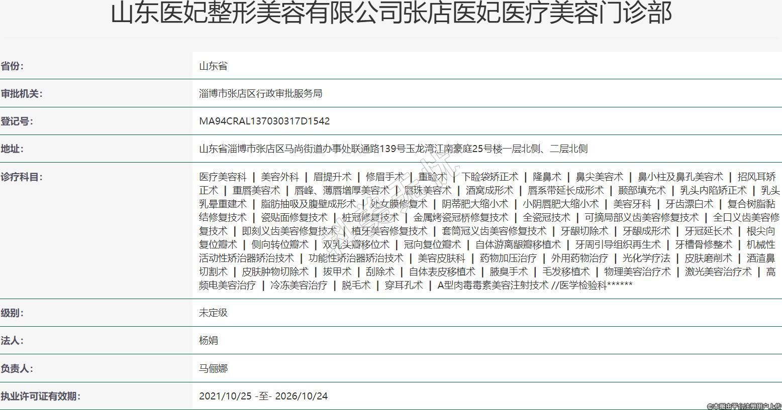 山东医妃整形美容有限公司张店医妃医疗美容门诊部