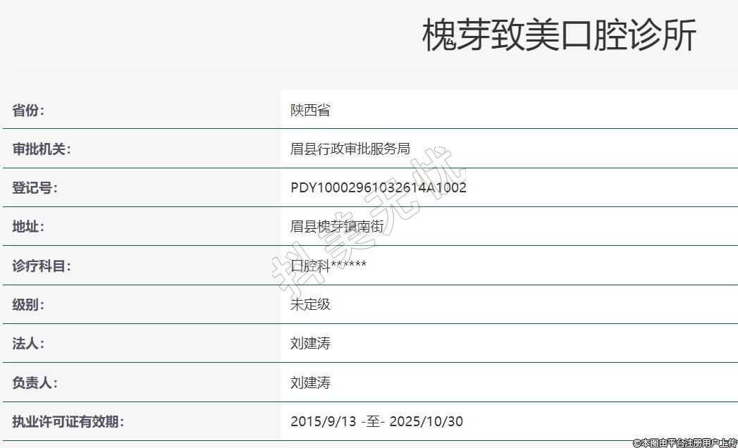 眉县致美口腔诊所成立于2021年01月08日,注册地位于陕西省宝鸡市眉县槐芽镇槐泉街西段北排,法定代表人为刘建涛。经营范围包括许可项目:医疗服务(依法须经批准的项目,经相关部门批准后方可开展经营活动,具体经营项目以审批结果为准)。