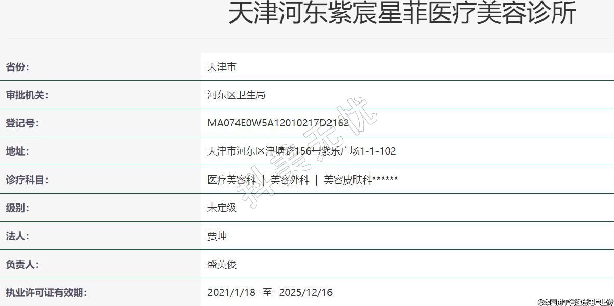 天津紫宸星菲医疗美容,统一社会信用代码:91120102MA074E0W5A,位于天津市河东区津塘路156号紫乐广场1-1-102,成立于2020年。秉承诚信、有爱和良父义务精神,以服务满意为宗旨,接轨国际医疗标准,树立行业自律先锋,肩负“做我国更受尊敬的医疗美容连锁品牌”这一使命,全力打造国际化高端医疗整形服务平台。