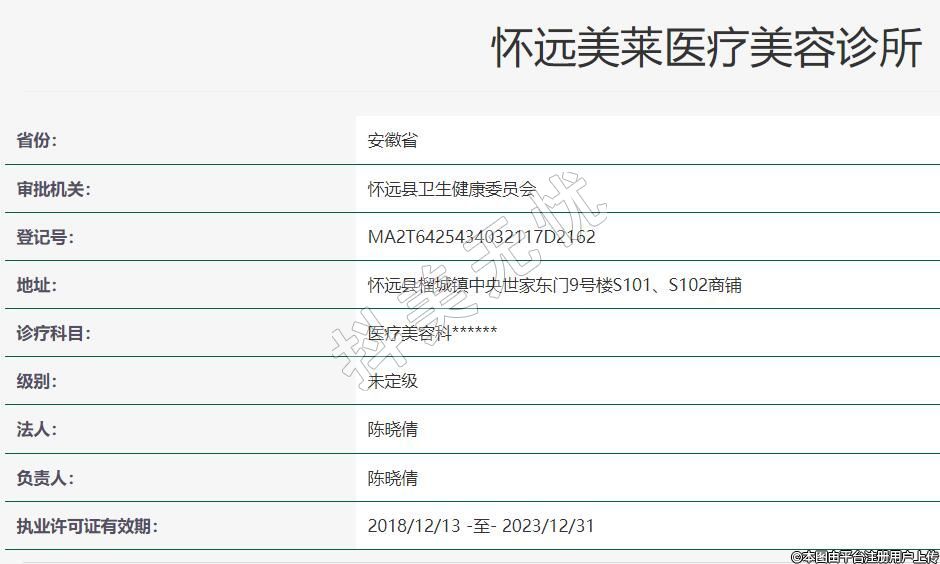 怀远美莱医疗美容2021-06-28成立,地址:怀远县榴城镇中央世家东门9号楼S101、S102商铺,诊疗科目:医疗美容科******