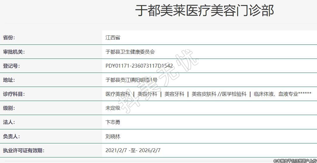 于都美莱医疗美容2020-11-21成立,诊疗科目:医疗美容科 | 美容外科 | 美容牙科 | 美容皮肤科 //医学检验科 | 临床体液、血液专业******