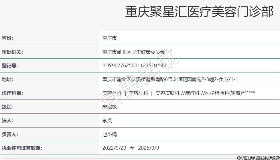 重庆聚星汇医疗美容创立于2020年,统一社会信用代码:91500112MA610MP918,地处于重庆市渝北区龙溪街道新南路6号龙湖花园南苑2-3幢2-负1/1-1。秉承“”以品质为核心、回归医疗本质“”的精神,以科学的态度、严谨的作风、标准的管理、品质的服务,致力于做我国值得信赖的品质轻奢医疗美容机构。