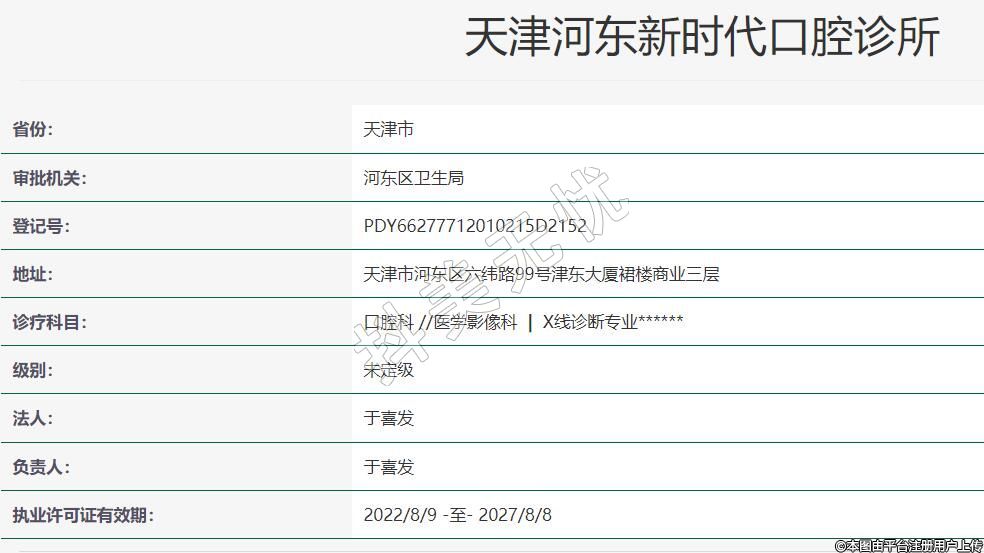 天津新时代口腔2022-07-25成立,地址:天津市河东区六纬路99号津东大厦裙楼商业三层,诊疗科目:口腔科 //医学影像科 | X线诊断专业******
