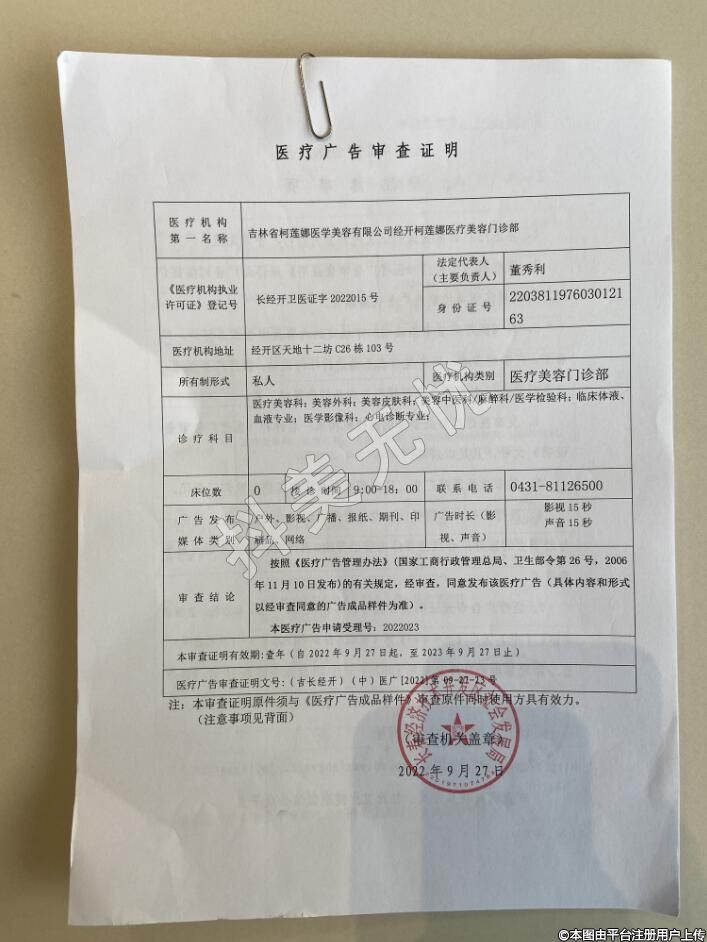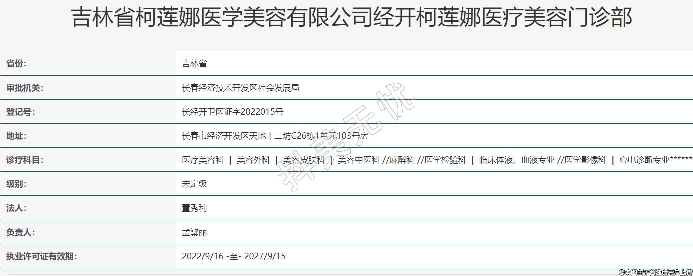 吉林省柯莲娜医学美容有限公司经开柯莲娜医疗美容门诊部