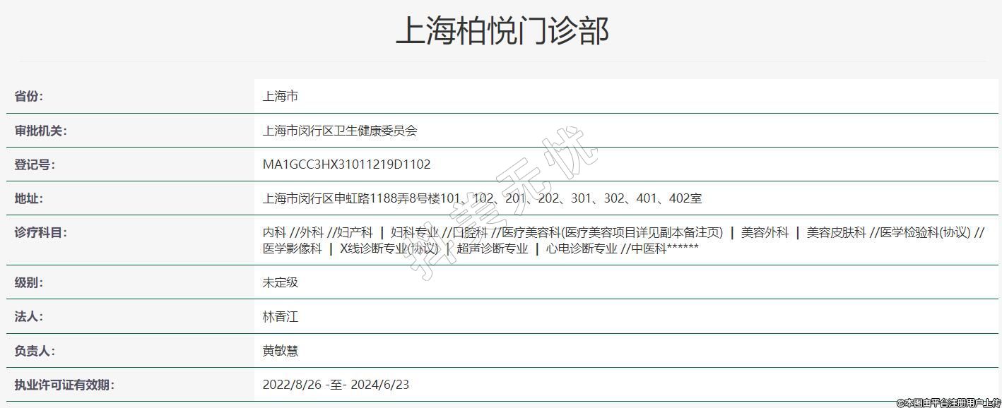 柏悦医疗集团是一个集医学美容、生活美容、微整形注射、健康咨询服务于一体的综合性医美服务平台。旗下拥有多家机构,分院遍布上海、厦门等全国主要城市。上海柏悦门诊部创建于2017年,是具有国家卫生局审批的综合门诊资质的医疗门诊医院,5层独栋,总占地两千多平。设有内科、外科、妇科、口腔科、医疗美容科、中医科等诊疗科室。