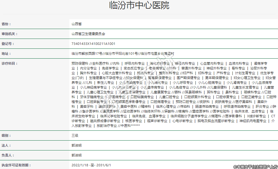 执业许可证有效期:2022/1/18 -至- 2031/6/1