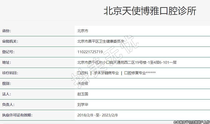 北京天使博雅口腔2017-10-12成立,地址:北京市昌平区东小口镇天通苑西二区19号楼-1至4层6-101一层,诊疗科目:口腔科 | 牙体牙髓病专业 | 口腔修复专业******