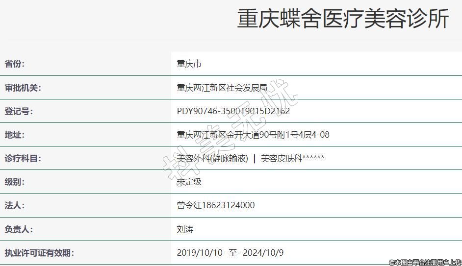 重庆蝶舍医疗美容创办于2018年,统一社会信用代码: 91500000MA606JQX8W,位于重庆市北部新区金开大道90号附1号4层4-08。引进了国内外先进水准的医疗设备,汇集世界同步专利技术和医疗团队精英,融合欧美、日韩、港澳台及内地前沿医学美容的艺术手法和美学标准理念,是明星和时尚爱美人士推荐和青睐的医美品牌。