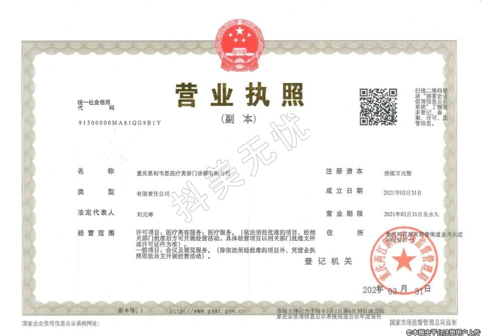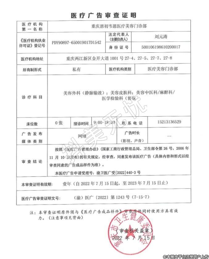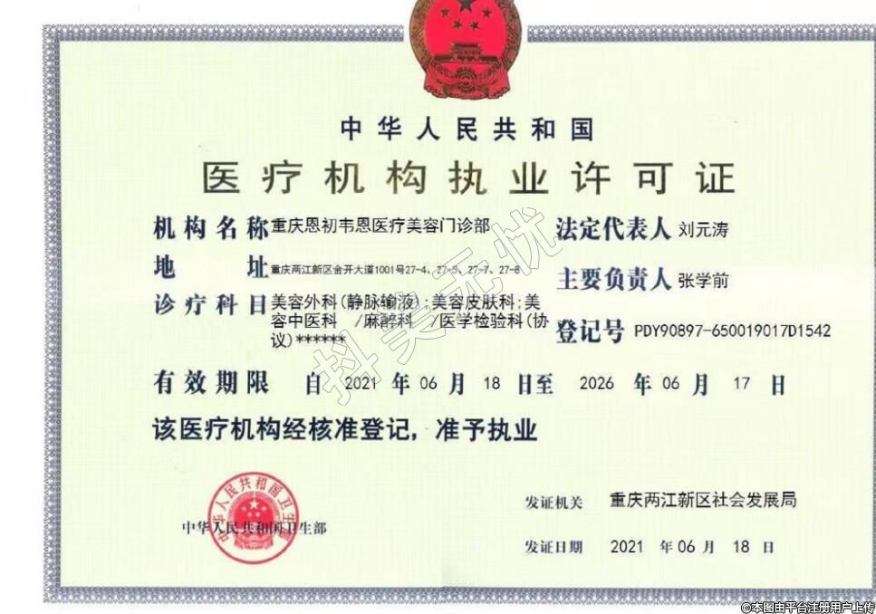 机构名称:重庆恩初韦恩医疗美容门诊部