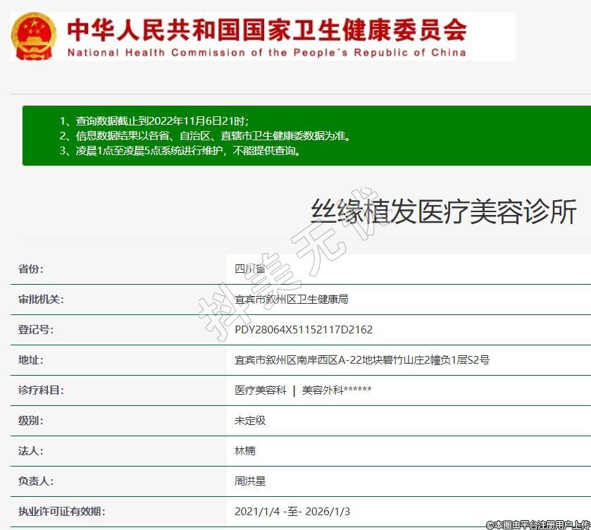 宜宾丝缘植发医疗美容2020-11-03成立,地址:宜宾市叙州区南岸西区A-22地块碧竹山庄2幢负1层S2号,诊疗科目:医疗美容科 | 美容外科******