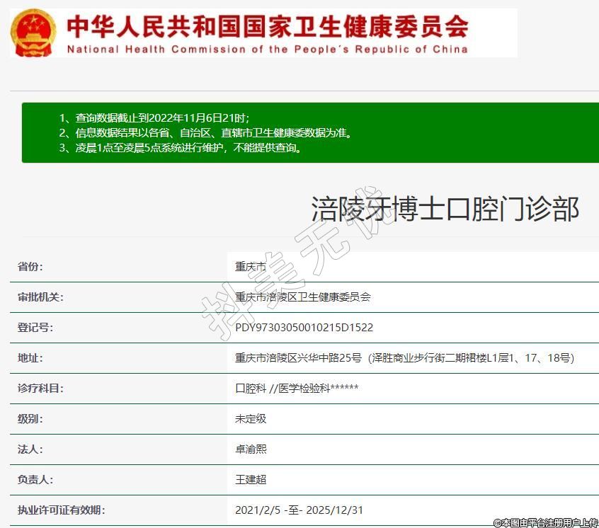 涪陵牙博士口腔2020-08-19成立,地址:重庆市涪陵区兴华中路25号(泽胜商业步行街二期裙楼L1层1、17、18号),诊疗科目:口腔科 //医学检验科******