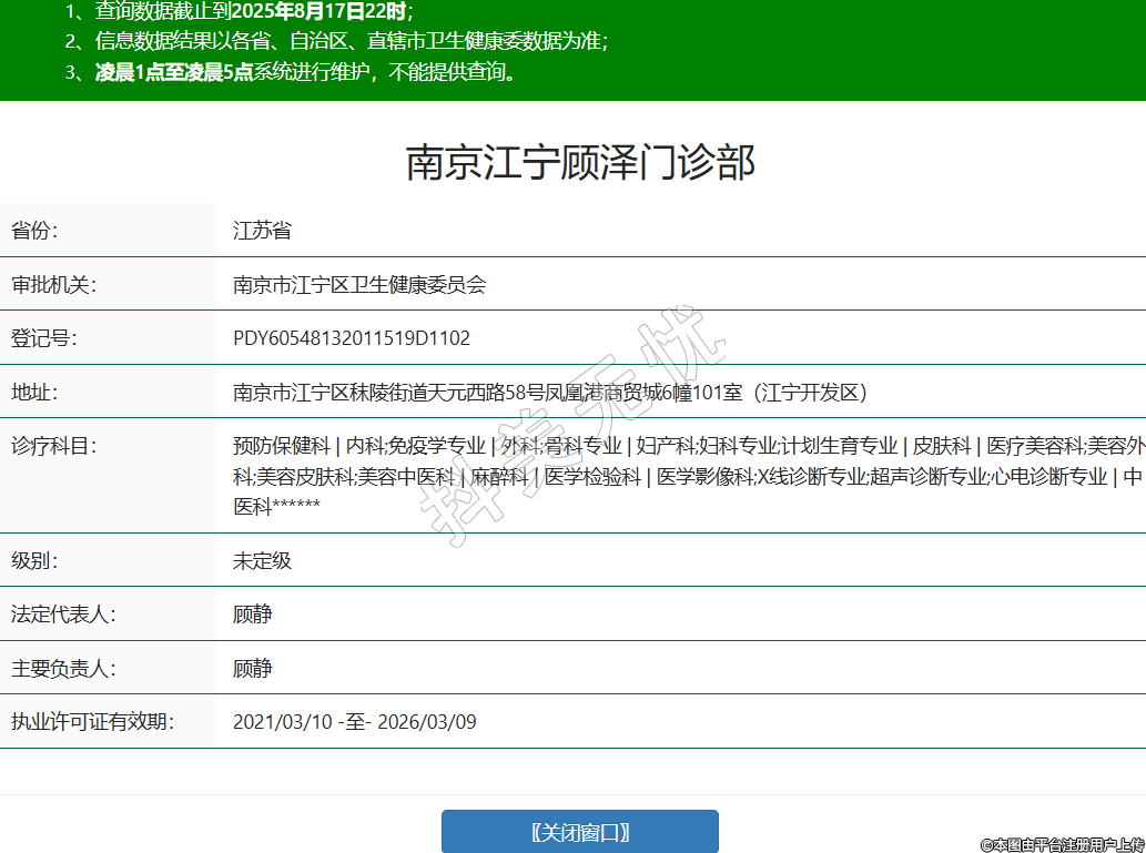 南京江宁顾泽门诊部医疗美容