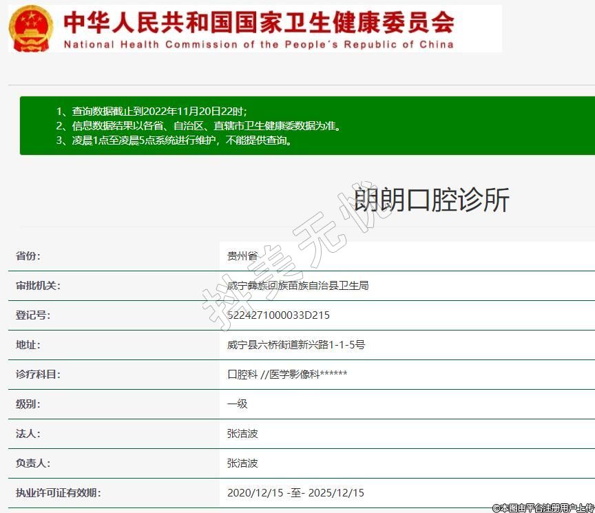 威宁朗朗口腔2020-06-24成立,地址:威宁县六桥街道新兴路1-1-5号,诊疗科目:口腔科 //医学影像科******