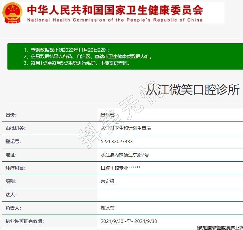 从江微笑口腔2022-09-05成立,地址:从江县丙妹镇江东路7号,诊疗科目:口腔正畸专业******