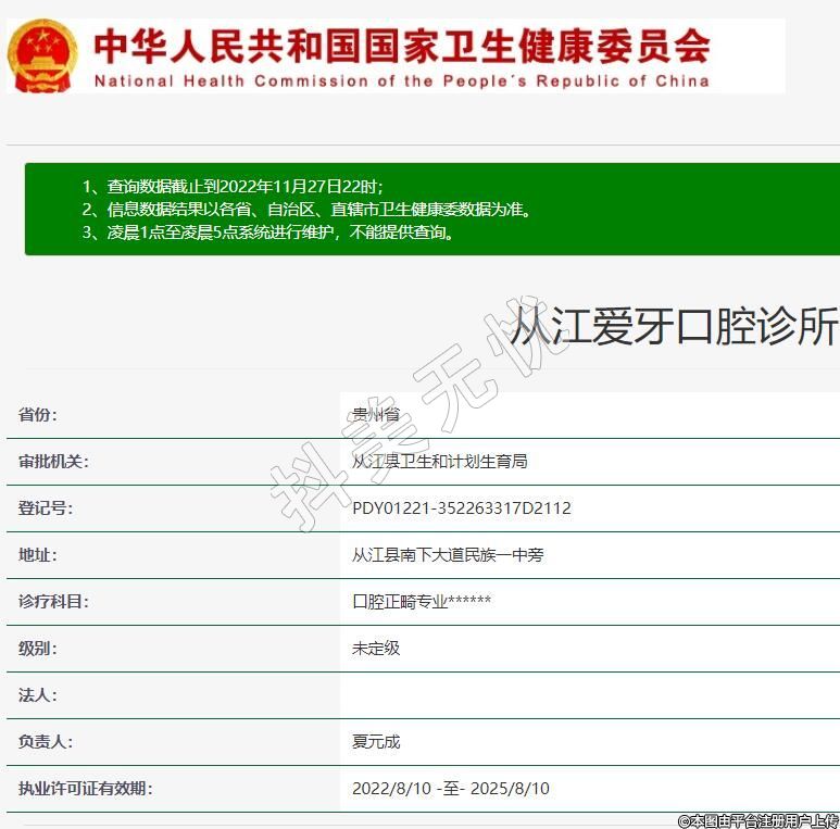 从江爱牙口腔2009-01-20成立,地址:从江县南下大道民族一中旁,诊疗科目:口腔正畸专业******