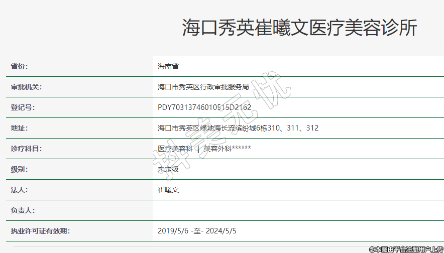 海口秀英崔曦文医疗美容诊所成立于2019-06-13,经营者为崔曦文,统一社会信用代码为92469006MA5TAERJ2Q,企业地址位于海南省海口市秀英区西秀镇滨海大道317号绿地缤纷城6栋310.311.312,所属行业为居民服务业,经营范围包含:理发及美容服务,医疗服务。海口秀英崔曦文医疗美容诊所目前的经营状态为存续(在营、开业、在册)。