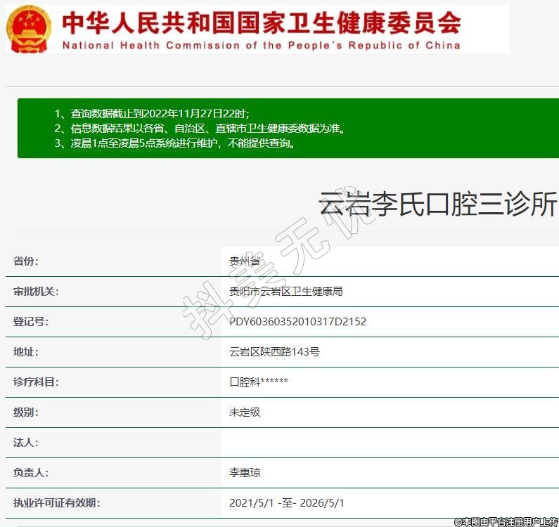 云岩李氏口腔2012-07-09成立,地址:云岩区陕西路143号,诊疗科目:口腔科******