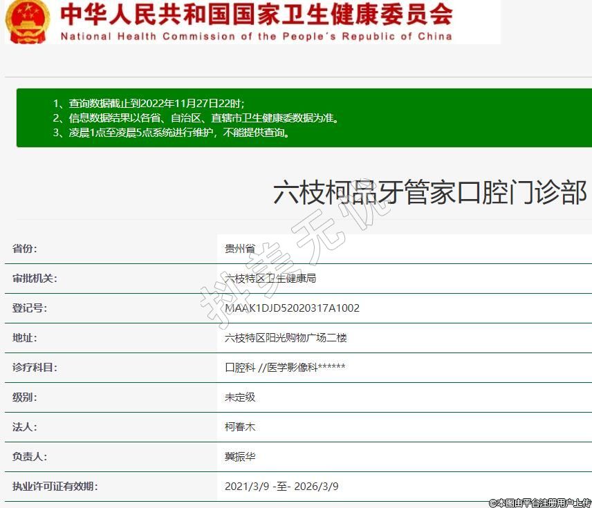 六枝柯品牙管家口腔2020-10-21成立,地址:六枝特区阳光购物广场二楼,诊疗科目:口腔科 //医学影像科******