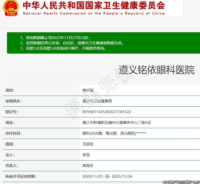 遵义铭依眼科医院是经遵义市卫健委批准设立的眼专科医疗机构,以眼视光方向为主要经营目标,实行预约制管理。专科特色为个性化治疗中高度近视的ICL晶体植入近视矫正技术,及专业干眼症诊疗眼健康管理服务为主要科目。