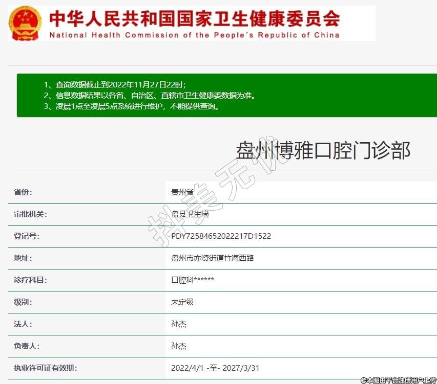 盘州博雅口腔2022-05-27成立,地址:盘州市亦资街道竹海西路,诊疗科目:口腔科******