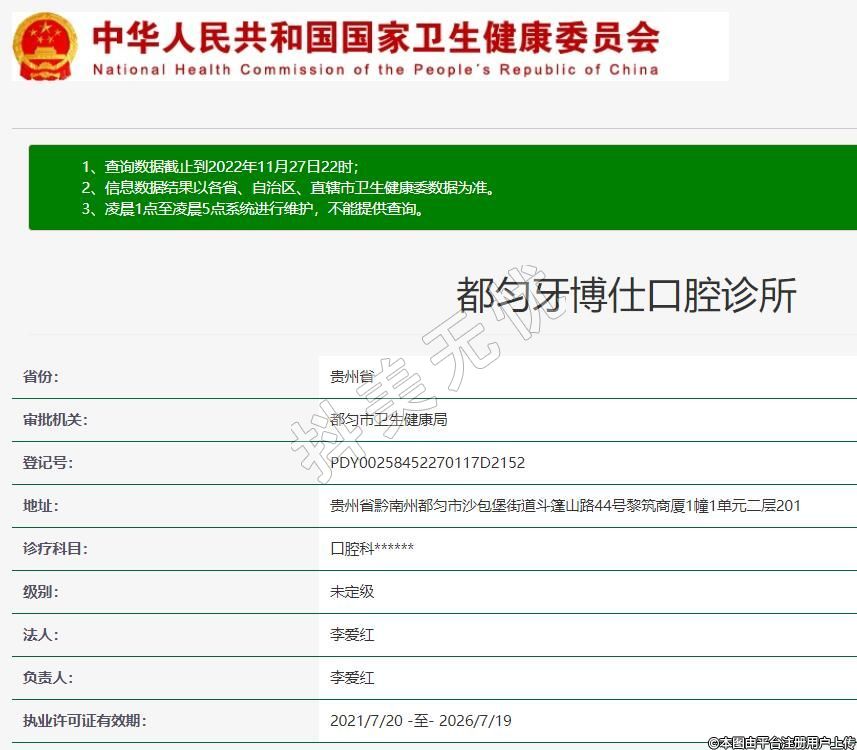 都匀牙博仕口腔2021-02-07成立,地址:贵州省黔南州都匀市沙包堡街道斗篷山路44号黎筑商厦1幢1单元二层201,诊疗科目:口腔科******