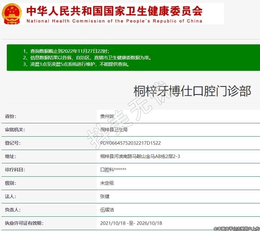 桐梓牙博仕口腔2021-07-27,诊疗科目:口腔科******
