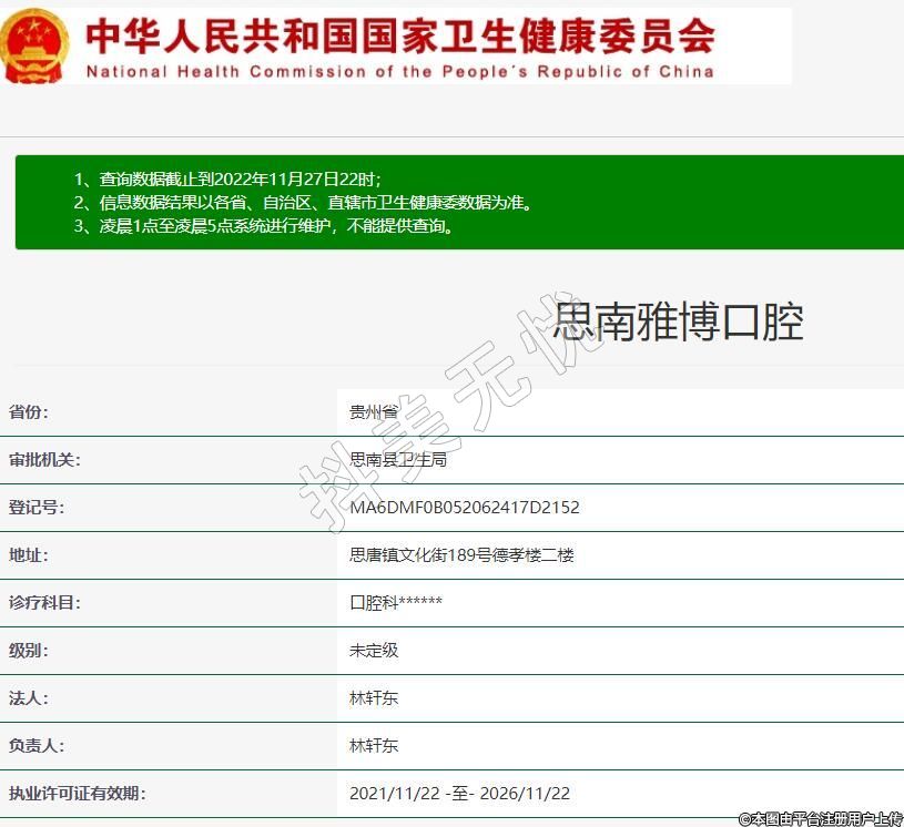 思南雅博口腔2016-08-02成立,诊疗科目:口腔科******