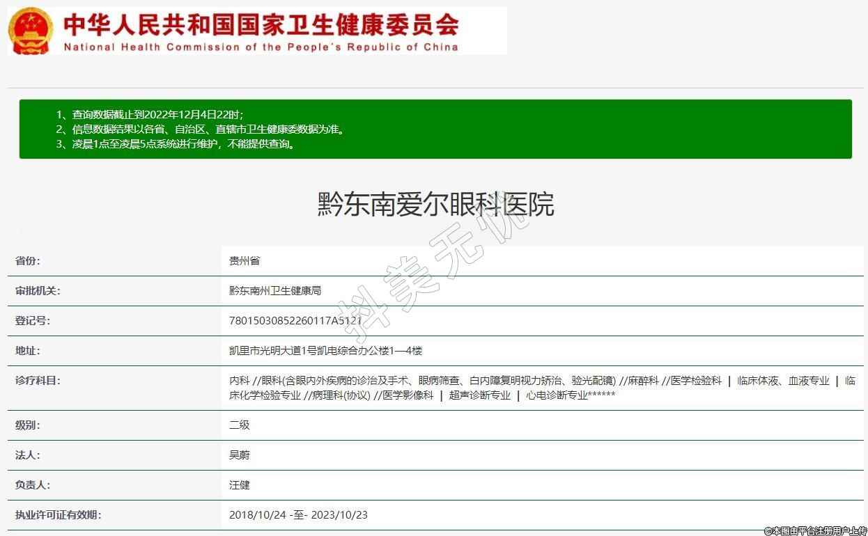 黔东南爱尔眼科,诊疗科目:内科 //眼科(含眼内外疾病的诊治及手术、眼病筛查、白内障复明视力矫治、验光配镜) //麻醉科 //医学检验科 | 临床体液、血液专业 | 临床化学检验专业 //病理科(协议) //医学影像科 | 超声诊断专业 | 心电诊断专业******