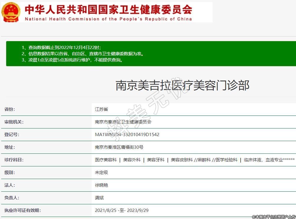 南京美吉拉医疗美容诊疗科目:医疗美容科 | 美容外科 | 美容牙科 | 美容皮肤科 //麻醉科 //医学检验科 | 临床体液、血液专业******