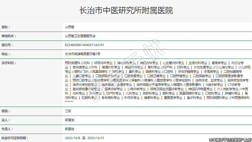 执业许可证有效期:2022/10/8 -至- 2033/12/31