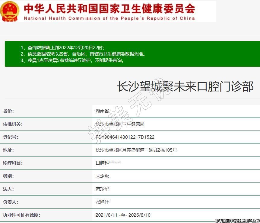 长沙望城聚未来口腔门诊部,诊疗科目:口腔科******