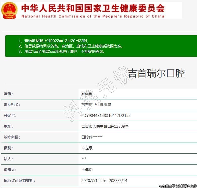 吉首瑞尔口腔,诊疗科目:口腔科******