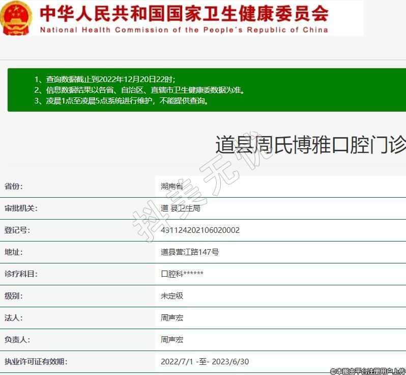 道县周氏博雅口腔,诊疗科目:口腔科******
