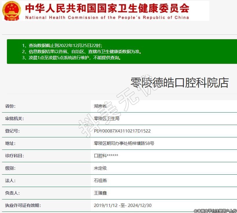 零陵德皓口腔,诊疗科目:口腔科******