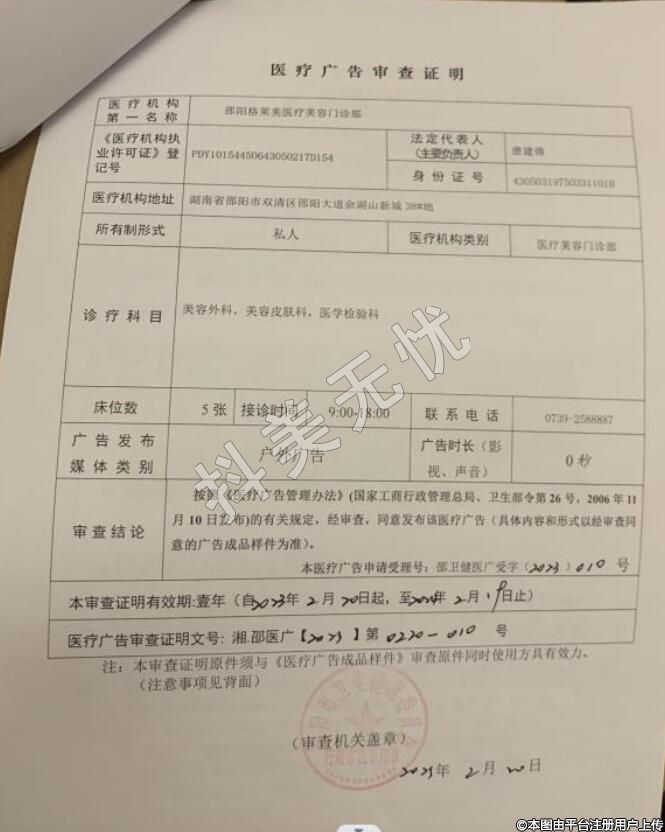 医疗机构名称:邵阳格莱美医疗美容门诊部