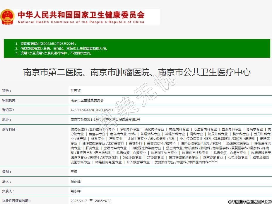 南京市第二医院、南京市肿瘤医院、南京市公共卫生医疗中心