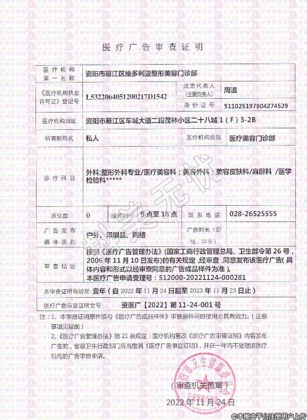 机构名称:资阳市雁江区维多利亚整形美容门诊部