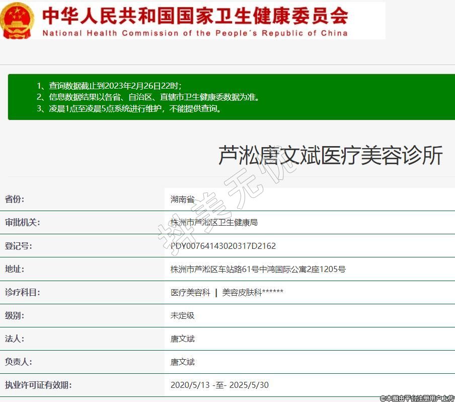 芦淞唐文斌医疗美容诊所,诊疗科目:医疗美容科 | 美容皮肤科******