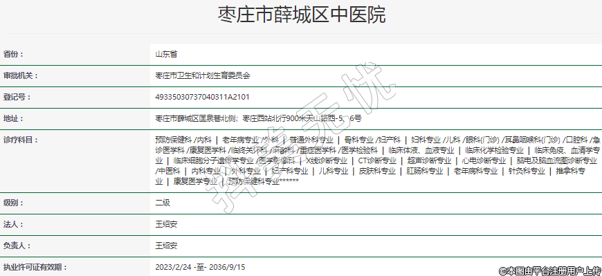 审批机关:枣庄市卫生和计划生育委员会