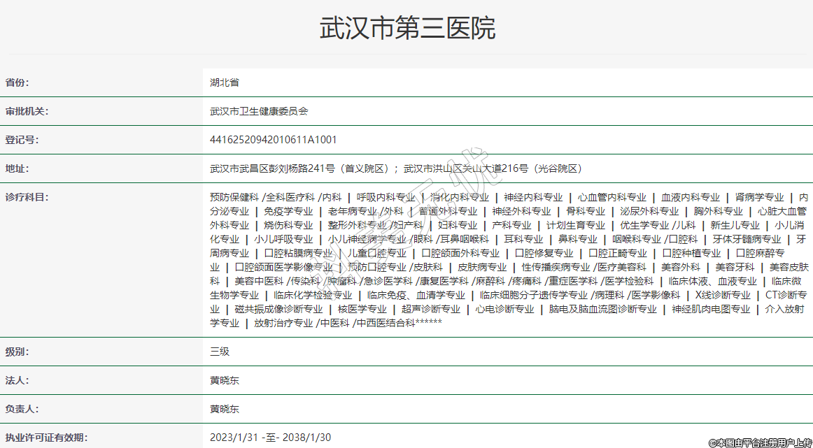 执业许可证有效期:2023/1/31 -至- 2038/1/30