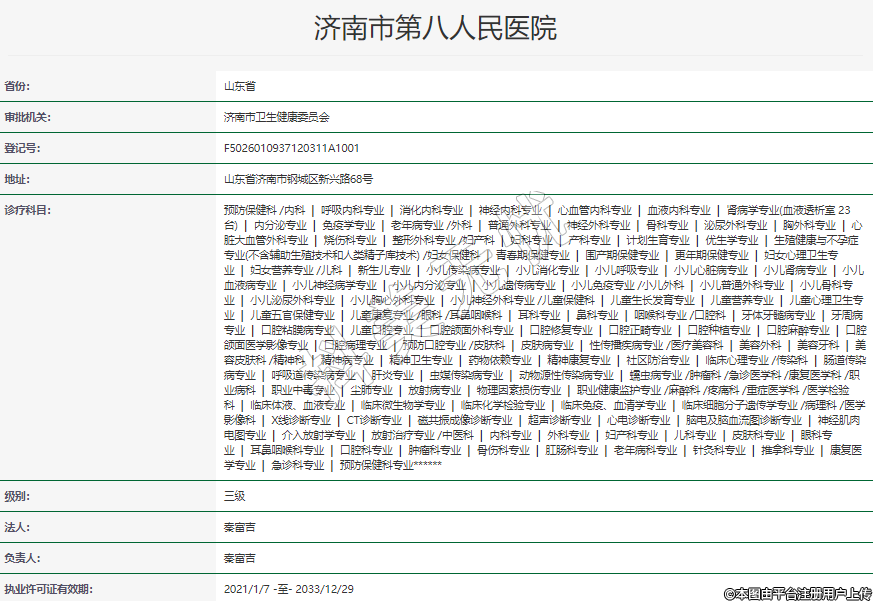 执业许可证有效期:2021/1/7 -至- 2033/12/29