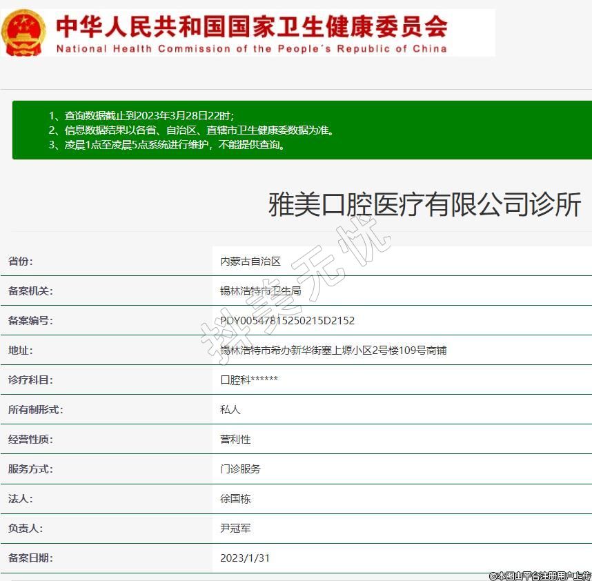 锡林浩特雅美口腔诊疗科目:口腔科******