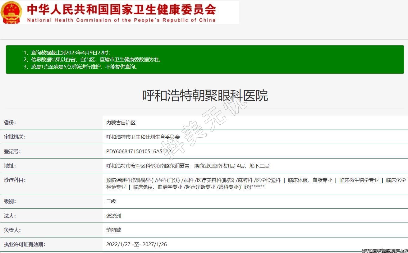 呼和浩特朝聚眼科诊疗科目:预防保健科(仅限眼科) /内科(门诊) /眼科 /医疗美容科(眼部) /麻醉科 /医学检验科 | 临床体液、血液专业 | 临床微生物学专业 | 临床化学检验专业 | 临床免疫、血清学专业 /超声诊断专业 /眼科专业(门诊)******