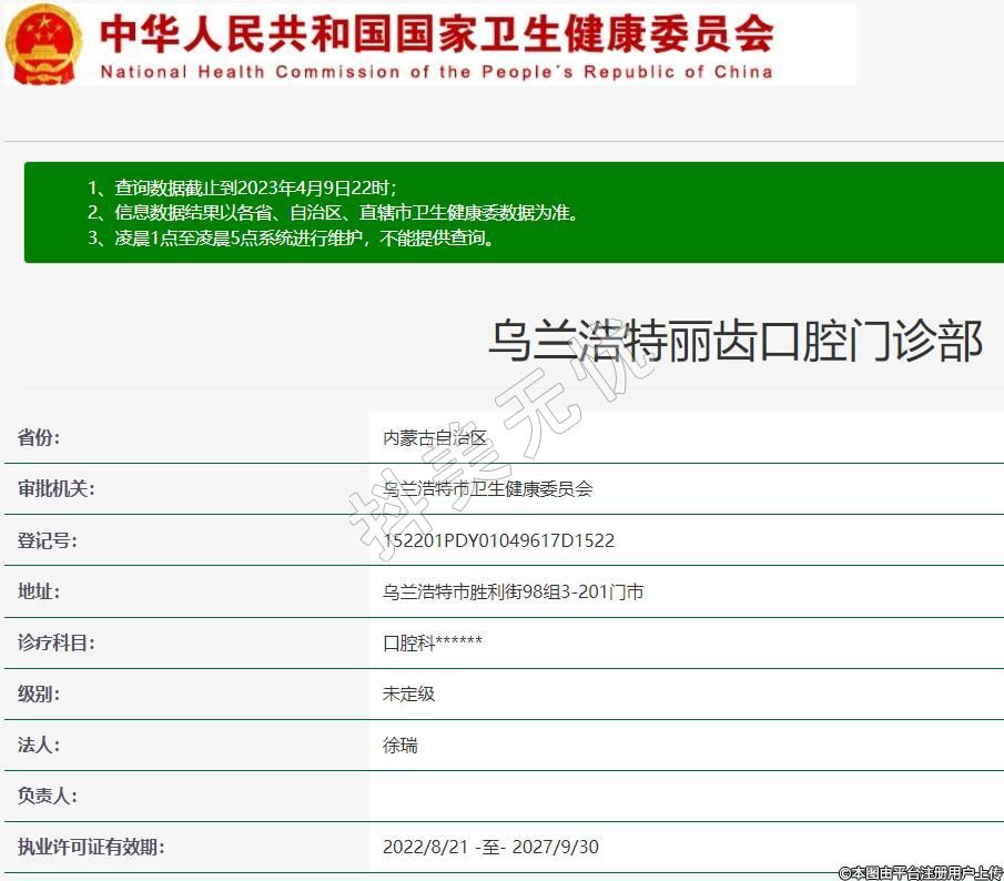 乌兰浩特丽齿口腔门诊部于2019年成立,位于内蒙古自治区兴安盟乌兰浩特市胜利街98组3-201一楼二楼门市,是兴安盟一家专业的口腔美容门诊部。