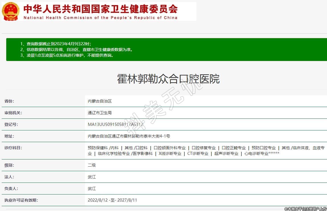 霍林郭勒众合口腔,诊疗科目:预防保健科 /内科 | 其他 /口腔科 | 口腔颌面外科专业 | 口腔修复专业 | 口腔正畸专业 | 预防口腔专业 | 其他 /临床体液、血液专业 | 临床化学检验专业 /医学影像科 | X线诊断专业 | CT诊断专业 | 超声诊断专业 | 心电诊断专业******